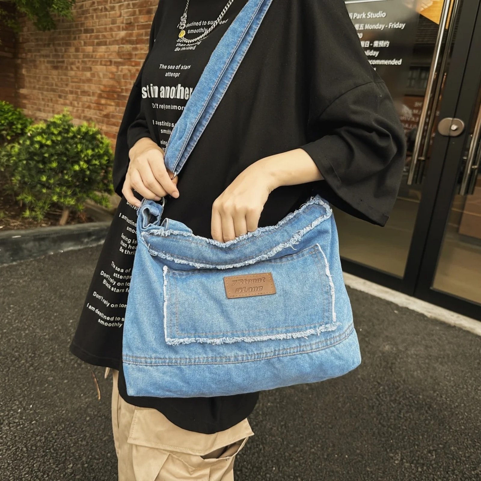 Xeie Thuk Denim Crossbody Bag-dark blue