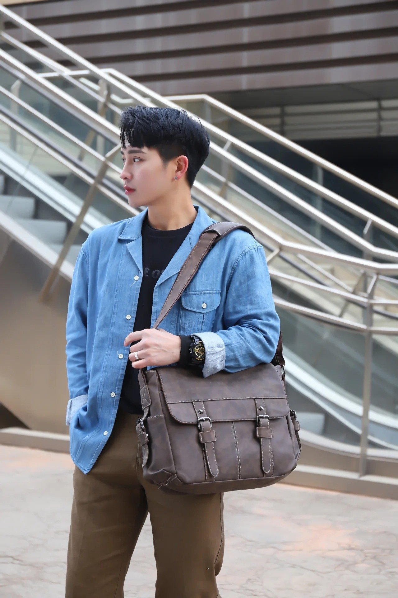 Xeie Thuk Men's Crossbody Bag-coffee